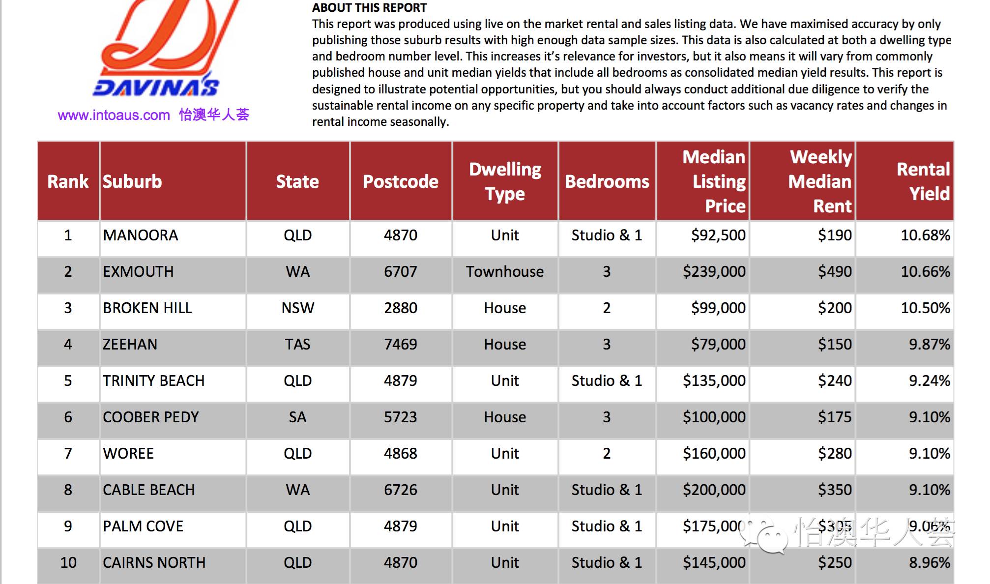 为了尽量满足大家不同的需求,小编会在近期整理《澳洲租金回报率最好50区》、以及《澳洲房价最便宜50区》